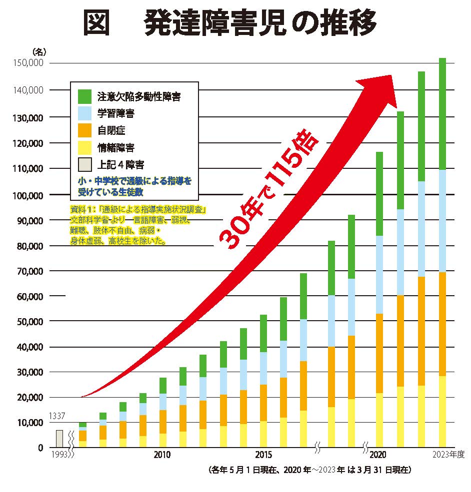 発達障害の専門家、医師、行政は、増加を続ける原因を追究せず、「生まれつきの脳障害です」「一生、治りません」と言うだけ。増加原因を見つけて取り除かないと、困り果てる子どもや家族が増えて、日本が亡びます。